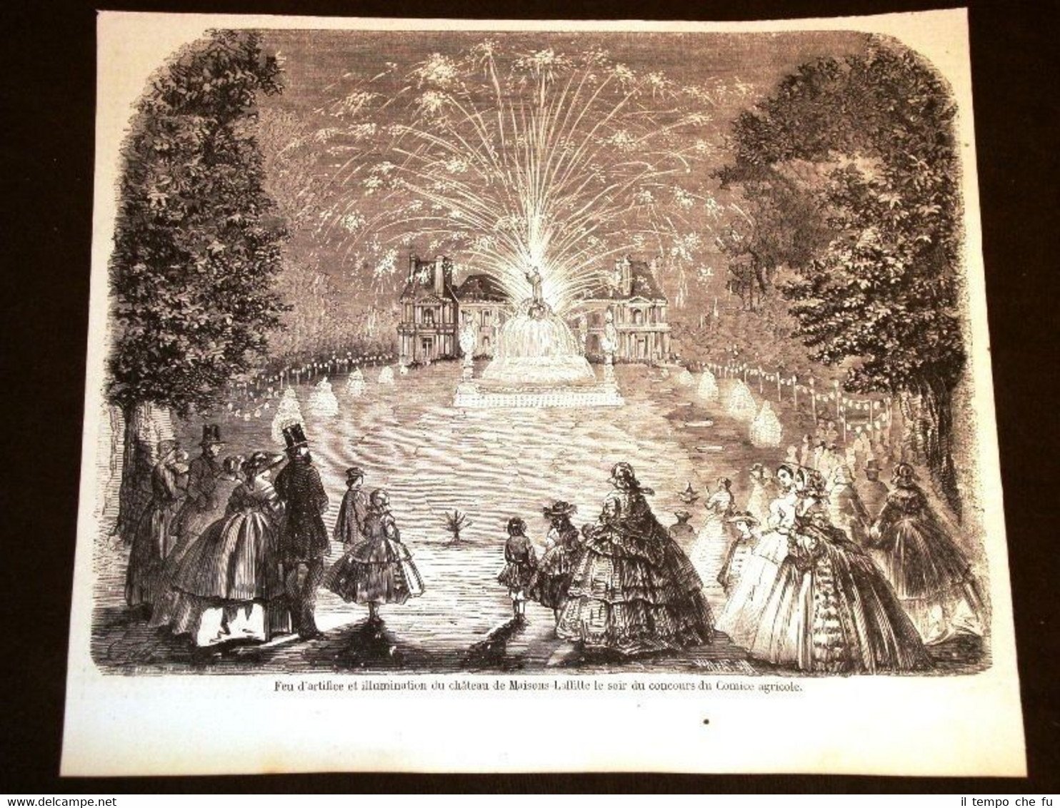 Rara Incisione Estratta da Rivista d'epoca del 1858 Chateau de Maison Laffitte nel 1858 Fuochi artificiali e illuminazione Concoirs du Comice agricole MI1858-001T Dimensioni Cm 23,50 x 21,00 Qualora vogliate delle scansioni migliori contattateci, soddisferemo ogni vostra richiesta. Paypal Carta di credito Bonifico bancario Accuratamente adagiate su un cartoncino e protette da pellicola trasparente rigida il tutto viene inserito dentro plico di adeguate dimensioni per proteggerne l'integrità