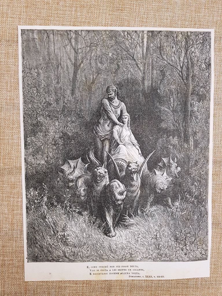 Chiesa Le 7 fiere Divina Commedia Purgatorio Incisione di Gustave Doré del 1887 Rara incisione estratta da pubblicazione del 1887 Il carro simbolico della Chiesa tirato da sette fiere Divina Commedia Purgatorio Incisione di Gustave Doré Codice prodotto: VIP-204 Dimensioni Cm 21,00 x 28,00
