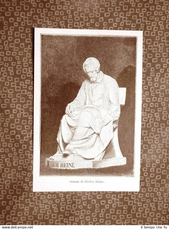 Rara stampa estratta da pubblicazione del 1894. .stampa che ha quindi oltre 125 anni! Christian Johann Heinrich Heine Dusseldorf, 1797 – Parigi, 1856 Poeta NEDA-015 Dimensioni Cm 9,00 x 13,00 Qualora vogliate delle scansioni migliori contattateci, soddisferemo ogni vostra richiesta. Paypal Carta di credito Bonifico bancario Accuratamente adagiate su un cartoncino e protette da pellicola trasparente rigida, il tutto viene inserito dentro plico di adeguate dimensioni per proteggerne l'integrità.
