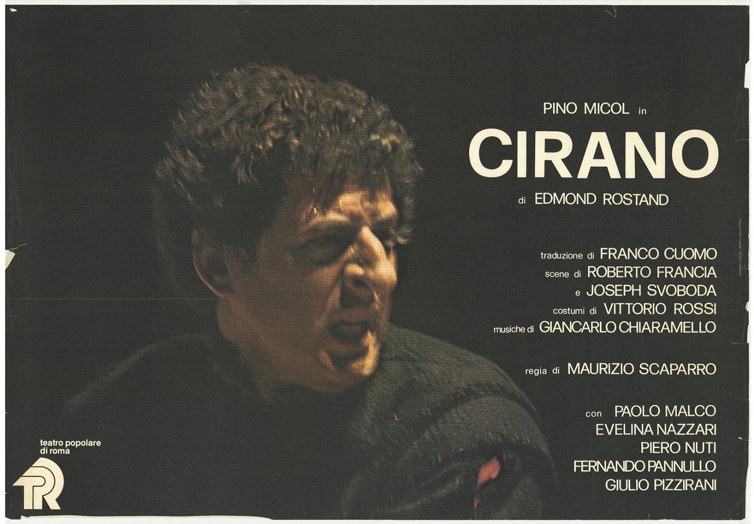 Di Edmon Rostand, con Pino Micol, regia di Maurizio Scaparro. Fotografia di Piero Casadei - Stampa Litobiemme. Teatro Popolare di Roma. Segni del tempo ai margini con pieghe e piccoli strappi. Esemplare ripiegato più volte
