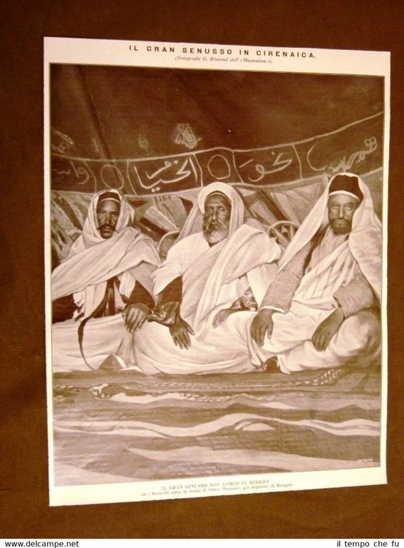 Rara stampa Estratta da Rivista d'epoca del 1913 . .stampa che ha quindi oltre 101 anni! Cirenaica o Libia nel 1913 Il gran Senusso Sidi Ahmed El Sceriff Presso la tenda di Omar Mansour II1913-004 Dimensioni Cm 24,00 x 31,00 Qualora vogliate delle scansioni migliori contattateci, soddisferemo ogni vostra richiesta. PaypalCarta di creditoBonifico bancario Accuratamente adagiate su un cartoncino e protette da pellicola trasparente rigida,il tutto viene inserito dentro plico di adeguate dimensioni per proteggerne l'integrità.