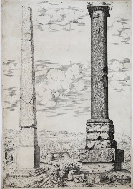 Bulino, circa 1550, firmato in basso a destra: Ant. lafrerij formis. Copia in controparte dell’incisione attribuita ad Enea Vico, pubblicata dalla tipografia di Antonio Salamanca. https://www.antiquarius.it/it/lafreri-speculum-romanae-magnificentiae/13902-colonna-antonina-e-panorama-di-roma.html Esemplare di stato unico per Alberti, nel secondo stato di due, con l’imprint di Lafreri, per Rubach, che descrive un primo stato della lastra, conservato alla BAV (Cicognara XII, 3886, fol. 12). Magnifica prova, ricca di toni, impressa su carta vergata coeva con filigrana “balestra nel cerchio” (cfr. Woodward, nn. 205-213), rifilata al rame, in ottimo stato di conservazione. Iscrizione sul basamento della Colonna: «COL. ANTONINI». “Questa stampa è l’esatta controparte della stampa di Salamanca e del suo paesaggio, che è un collage di edifici romani: Castel sant’Angelo, le mura, i ponti sul Tevere, l’Isola Tiberina, San Pietro in Montorio… la lupa, la personificazione del Tevere. L’obelisco è spostato in avanti perché la colonna sembri superarlo in altezza. L’esemplare qui riprodotto può essere considerato, anche se in controparte, derivante dall’incisione di Enea Vico, l’autore dall’esame dello stile grafico, potrebbe essere Nicolas Beatrizet. ' ' Di grande effetto è la resa dello sfondo con i ponti in prospettiva dal ponte Santa Maria a Ponte Sisto”. (cfr. Marigliani, ' Lo splendore di Roma nell’Arte incisoria del Cinquecento). Peculiarità di questa incisione è che, in basso a destra, poco sopra l’imprint dell’editore, compare l’attributo figurato dell’ala di uccello; tale attributo è presente anche nell’incisione speculare edita da Salamanca e che ha indotto alcuni studiosi ad attribuire la tavola lafreriana ad un fantomatico Maestro dell’ala di uccello. L’attribuzione al Beatrizet di Marigliani, sebbene non suffragata da nessun altro studioso, sembra assolutamente plausibile. Lo stile grafico ricorda altre incisioni del lorenese, di qualità addirittura superiore al prototipo del Vico. La stampa è attribuita ancora ad Enea Vico nel catalogo dell'Istituto Centrale per la Grafica ' https://www.calcografica.it/stampe/inventario.php?id=S-FC70348 L’opera appartiene allo ' Speculum Romanae Magnificentiae, la prima iconografia della Roma antica. La lastra figura nell'Indice del Lafreri ai nn. 141 e 206/207, descritta come Colonna Antonina con fragmenti di uno degli Obselischi ch’erano nel Mausoleo di Augusto. Lo ' Speculum ' ebbe origine nelle attività editoriali di Antonio Salamanca e Antonio Lafreri (Lafrery). Durante la loro carriera editoriale romana, i due editori - che hanno lavorato insieme tra il 1553 e il 1563 - hanno avviato la produzione di stampe di architettura, statuaria e vedutistica della città legate alla Roma antica e moderna. Le stampe potevano essere acquistate individualmente da turisti e collezionisti, ma venivano anche acquistate in gruppi più grandi che erano spesso legati insieme in un album. Nel 1573, Lafreri commissionò a questo scopo un frontespizio, dove compare per la prima volta il titolo Speculum Romanae Magnificentiae. Alla morte di Lafreri, due terzi delle lastre di rame esistenti andarono alla famiglia Duchetti (Claudio e Stefano), mentre un altro terzo fu distribuito tra diversi editori. Claudio Duchetti continuò l’attività editoriale, implementando le lastre dello Speculum con copie di quelle “perdute” nella divisione ereditaria, che fece incidere al milanese Amborgio Brambilla. Alla morte di Claudio (1585) le lastre furono cedute – dopo un breve periodo di pubblicazione degli eredi, in particolare nella figura di Giacomo Gherardi - a Giovanni Orlandi, che nel 1614 vendette la sua tipografia al fiammingo Hendrick van Schoel. Stefano Duchetti, al contrario, cedette le proprie matrici all’editore Paolo Graziani, che si associò con Pietro de Nobili; il fondo confluì nella tipografia De Rossi passando per le man. Engraving, ca. 1550, signed lower right: Ant. lafrerij formis. Counterpart copy of engraving attributed to Enea Vico, published by Antonio Salamanca's printing house. https://www.antiquarius.it/it/lafreri-speculum-romanae-magnificentiae/13902-colonna-antonina-e-panorama-di-roma.html Example of the only state know by Alberti, of the second state of two, with Lafreri's imprint, according Rubach, who describes a first state of the plate, preserved at the BAV (Cicognara XII, 3886, fol. 12). Magnificent proof, rich in tone, impressed on contemporary laid paper with "crossbow in the circle" watermark (cf. Woodward, nos. 205-213), trimmed to copperplate, in excellent condition. Inscription on the base of the column: "COL. ANTONINI". “This print is the exact counterpart of the Salamanca print and its landscape, which is a collage of Roman buildings: Castel sant'Angelo, the walls, the bridges over the Tiber, Tiber Island, San Pietro in Montorio.the she-wolf, the personification of the Tiber. The obelisk is moved forward so that the column appears to surpass it in height. The example reproduced here can be considered, although in counterpart, to be derived from the engraving of Enea Vico, the author from examination of the graphic style, could be Nicolas Beatrizet. ' ' Of great effect is the rendering of the background with the bridges in perspective from Ponte Santa Maria to Ponte Sisto” (translation from C. Marigliani, ' Lo splendore di Roma nell’Arte incisoria del Cinquecento). A peculiarity of this engraving is that, in the lower right-hand corner, just above the publisher's imprint, appears the figurative attribute of the bird's wing; this attribute is also present in the mirror engraving published by Salamanca and has led some scholars to attribute the plate to a phantom Master of the Bird's Wing. The attribution to Beatrizet by Margliani, although not supported by any other scholar, seems entirely plausible. The graphic style is reminiscent of other engravings by the artist, o