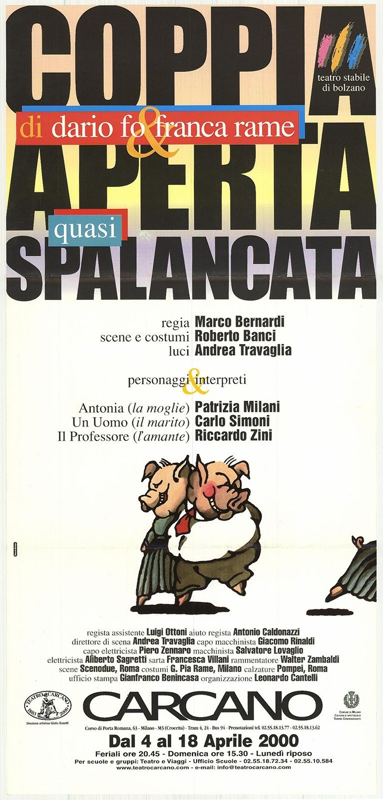 di Dario Fo e Franca Rame, regia di Marco Bernardi. Teatro Stabile di Bolzano. Teatro Carcano 4-18 aprile 2000. Locandina ripiegata più volte con piccolo stappo