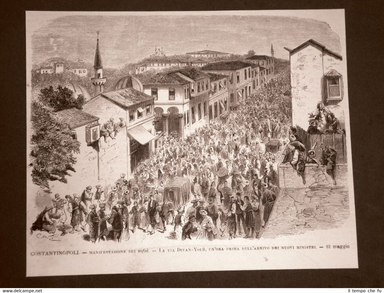Costantinopoli Istanbul nel 1876 Manifestazione dei Softà Via Divan Yolù Turchia