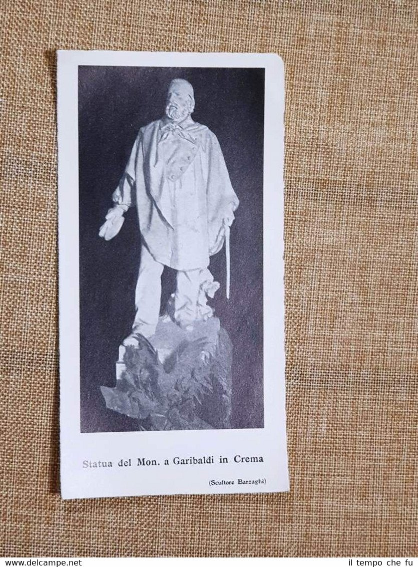 Crema Statua del monumento a Giuseppe Garibaldi Scultore Barzaghi Lombardia Rara stampa estratta da pubblicazione di fine '900 Stampata su carta non retroscritta Crema Statua del monumento a Giuseppe Garibaldi Scultore Barzaghi Cremona Lombardia Codice articolo: VIP-161 Dimensioni: Cm 8,00 x 16,00