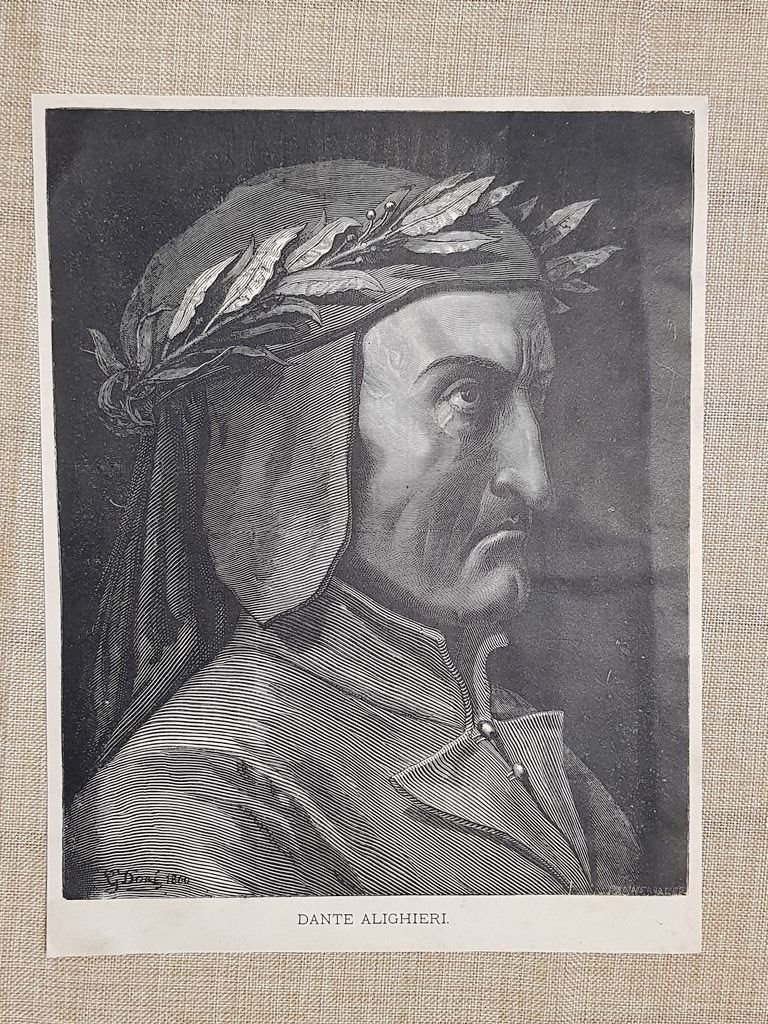 Dante Alighieri o Alighiero Poeta e scrittore Incisione di Gustave Doré del 1887 Rara incisione estratta da pubblicazione del 1887 Dante Alighieri o Alighiero Poeta e scrittore Incisione di Gustave Doré Codice prodotto: VIP-197 Dimensioni Cm 21,00 x 28,00