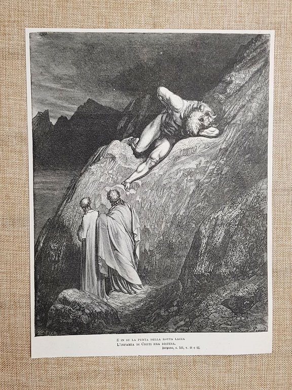 Dante e il Minotauro Divina Commedia Inferno Incisione di Gustave Doré del 1887 Rara incisione estratta da pubblicazione del 1887 Dante incontra il Minotauro Divina Commedia Incisione di Gustave Doré Codice prodotto: VIP-199 Dimensioni Cm 21,00 x 28,00