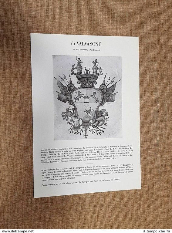 Di Valvasone (Pordenone) Stemma Famiglia Nobile Nobiltà Araldica