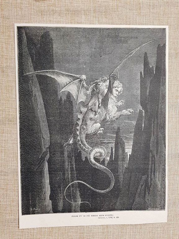 Discesa nelle Malebolgie Divina Commedia Inferno Incisione Gustave Doré del 1887 Rara incisione estratta da pubblicazione del 1887 La discesa nelle Malebolgie Divina Commedia Inferno Incisione di Gustave Doré Codice prodotto: VIP-199 Dimensioni Cm 21,00 x 28,00