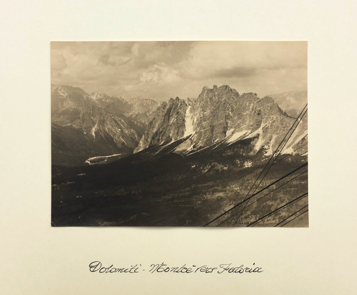 Fotografia originale con veduta dei dintorni di Cortina d'Ampezzo vista dalla funivia del Faloria. Applicata su cartoncino