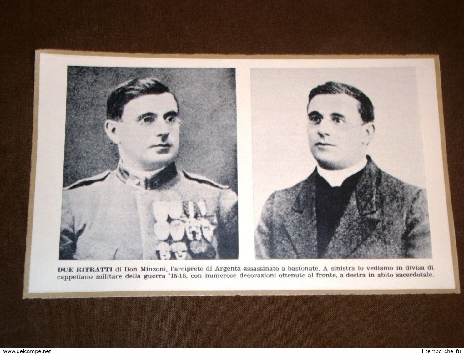 Stampa Estratta da Rivista d'epoca di metà '900 Antifascista Don Giovanni Minzoni Ravenna, 1º luglio 1885 - Argenta, 23 agosto 1923 In divisa da cappellano militare nella WW1 e in abito sacerdotale DUCE-010 Dimensioni Cm 19,00 x 12,00 Qualora vogliate delle scansioni migliori contattateci, soddisferemo ogni vostra richiesta. PaypalCarta di creditoBonifico bancario Accuratamente adagiate su un cartoncino e protette da pellicola trasparente rigida,il tutto viene inserito dentro plico di adeguate dimensioni per proteggerne l'integrità.