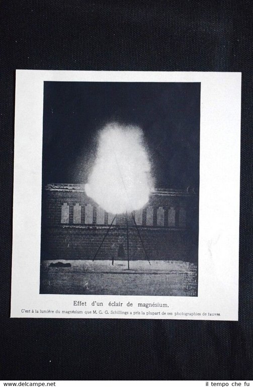 Rara stampa estratta da pubblicazione del 1906. .stampa che ha quindi oltre 112 anni! Effetto di un lampo di magnesio è alla luce del magnesio che C. C. Schillings ha scattato la maggior parte delle sue fotografie di grandi felini. Dimensioni Cm 12,00 x 13,00 Illustration 1906 - 26 Qualora vogliate delle scansioni migliori contattateci, soddisferemo ogni vostra richiesta. Paypal Carta di credito Bonifico bancario Accuratamente adagiate su un cartoncino e protette da pellicola trasparente rigida, il tutto viene inserito dentro plico di adeguate dimensioni per proteggerne l'integrità.