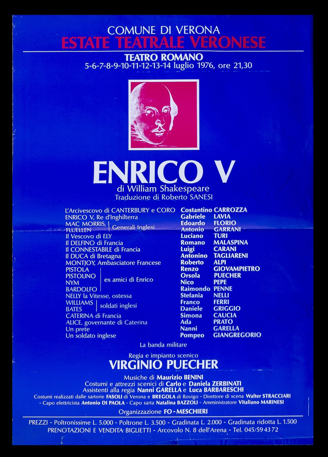 Di William Shakespeare, traduzione di Roberto Sanesi, regia di Virginio Puecher. Estate Teatrale Veronese 5-14 luglio 1976, Industria Grafica Moderna S.p.a. - Verona. Esemplare ripiegato più volte, strappetti e usura ai margini