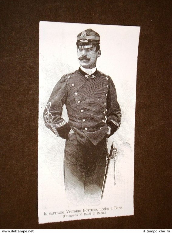 Rara incisione Estratta da Rivista d'epoca del 1897. .incisione che ha quindi oltre 117 anni! Esploratore Vittorio Bòttego Parma, 29 luglio 1860 - Daga Roba, 17 marzo 1897 II1897-028 Dimensioni Cm 9,00 x 17,00 Qualora vogliate delle scansioni migliori contattateci, soddisferemo ogni vostra richiesta. PaypalCarta di creditoBonifico bancario Accuratamente adagiate su un cartoncino e protette da pellicola trasparente rigida,il tutto viene inserito dentro plico di adeguate dimensioni per proteggerne l'integrità.