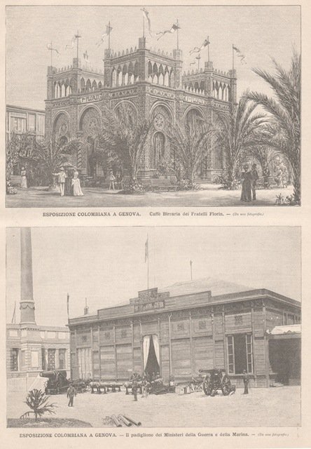 Esposizione colombiana a Genova - Caffè Birraria dei Fratelli Florin - Il padiglione dei Ministeri della Guerra e della Marina