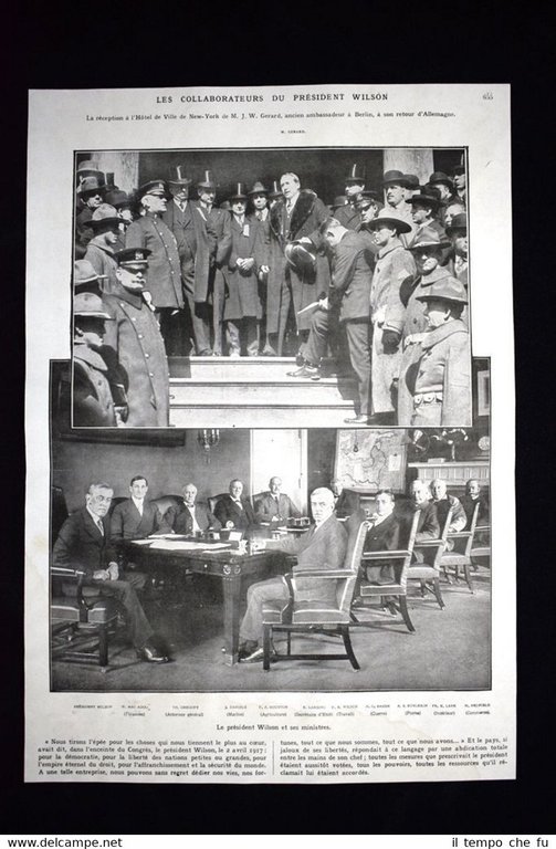 Rara stampa Estratta da pubblicazione del 1922 sulla Prima Guerra Mondiale del 1914-1918. .stampa che ha quindi oltre 95 anni! Rare print Extracted from publication of 1922 about the First World War of 1914 -1918. . press that has so over 95 years! Impression rare Extrait de la publication de 1922 sur la Première Guerre mondiale 1914-1918 . . press qui a tellement plus de 95 ans! Seltene druck Gewonnen aus der Veröffentlichung von 1922 auf dem Ersten Weltkrieg 1914-1918 . . Drücken, die so über 95 Jahren! Les Collaborateurs du President Wilson La reception à l'Hotel de Ville de New York de M.J.W. Gerard, ancien ambassadeur à Berlin, à son retour d'Allemagne. Le président Wilson et ses ministres + L'etat de guerre aux Etats-Unis La resolution conjointe de la Chambre et du Senat americains, datée du 6 avril et déclarant l'etat de guerre entre l'Allemagne et les Etats-Unis. La derniere page de la proclamation de la guerre avec l'Allemagne, signée par le president Wilson et le secrétaire d'Etat Lansing. Le president Wilson, un mois auparavant, le 5 mars 1917, lisant à la foule devant le Capitole de Washington, l'adresse inaugurale de sa seconde presicence. Premiers aspects de l'etat de guerre: les voies ferrées et travaux d'art sont gardés la relève des sentinelles à l'entrée d'un tunnel dans le Massachusetts Dimensioni Fronte/retro Cm 35,00 x 24,00 ADLG - 001 Qualora vogliate delle scansioni migliori contattateci, soddisferemo ogni vostra richiesta. PaypalCarta di creditoBonifico bancario La stampa verrà inserita all'interno di plico di adeguate dimensioni per proteggerne l'integrità