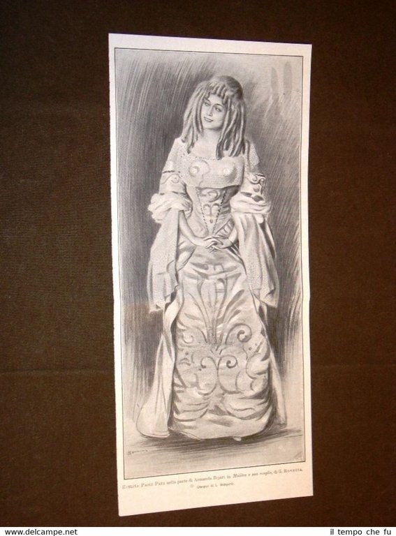Rara Stampa Estratta da Rivista d'epoca del 1909 Evelina Paoli Papa nel 1909 In Armanda Bejart in Molière e sua moglie di Rovetta II1909-047T Cm 16,00 x 36,00 Qualora vogliate delle scansioni migliori contattateci, soddisferemo ogni vostra richiesta. Paypal Carta di credito Bonifico bancario Accuratamente adagiate su un cartoncino e protette da pellicola trasparente rigida il tutto viene inserito dentro plico di adeguate dimensioni per proteggerne l'integrità