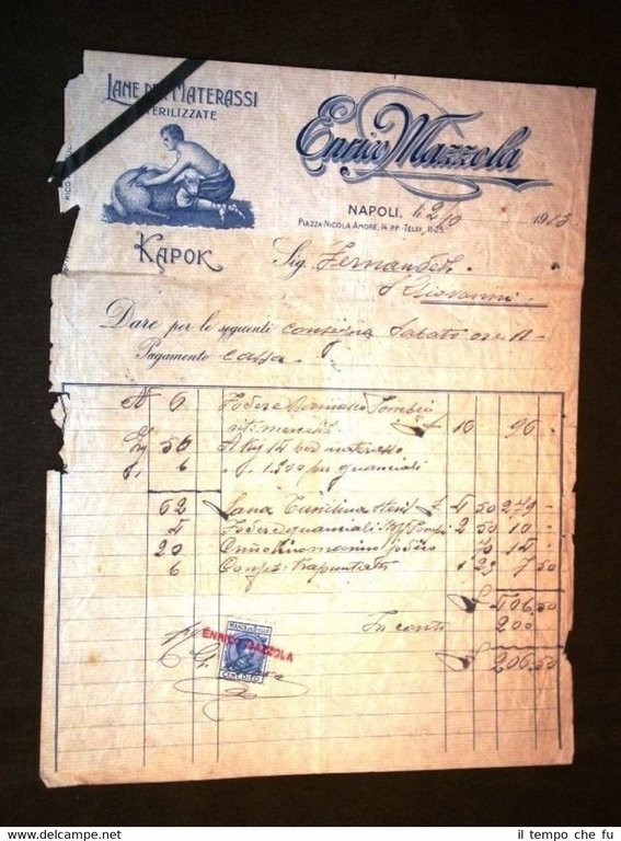 Fattura Enrico Mazzola di Napoli del 2 Ottobre 1913