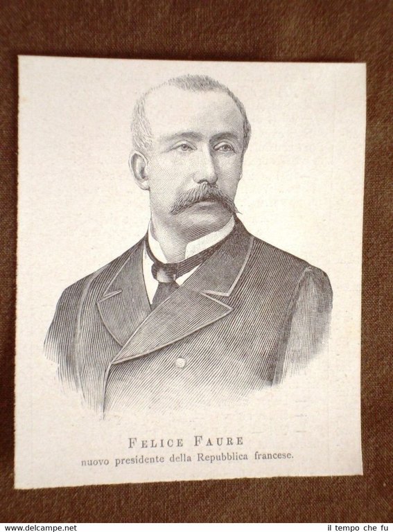 Rara Incisione Estratta da Rivista d'epoca del 1895 Félix Faure di Parigi nel 1895 Presidente della Repubblica di Francia II1895-016 Dimensioni Cm 9,00 x 11,00 Qualora vogliate delle scansioni migliori contattateci, soddisferemo ogni vostra richiesta. Paypal Carta di credito Bonifico bancario Accuratamente adagiate su un cartoncino e protette da pellicola trasparente rigida, il tutto viene inserito dentro plico di adeguate dimensioni per proteggerne l'integrità.