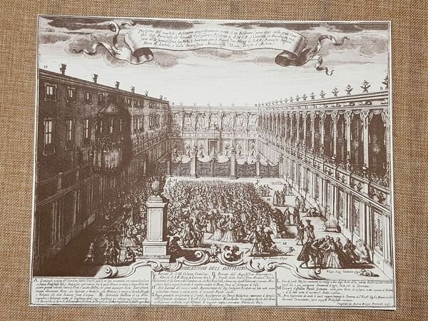 Ferrara nel 1736 Le nozze del Duca di Lorena A. Bolzoni Litografia Ristampa Bellissima litografia stampata su cartoncino Ferrara nel 1736 Nozze Duca Francesco Stefano di Lorena e Arciduchessa Maria Tesera d'Austria Ricevimento offerto da Fortunato de' Cervelli nell'Anfiteatro Emilia Romagna Andrea Bolzoni Ristampa Codice articolo: VIP-168 Dimensioni: Cm 26,00 x 21,00