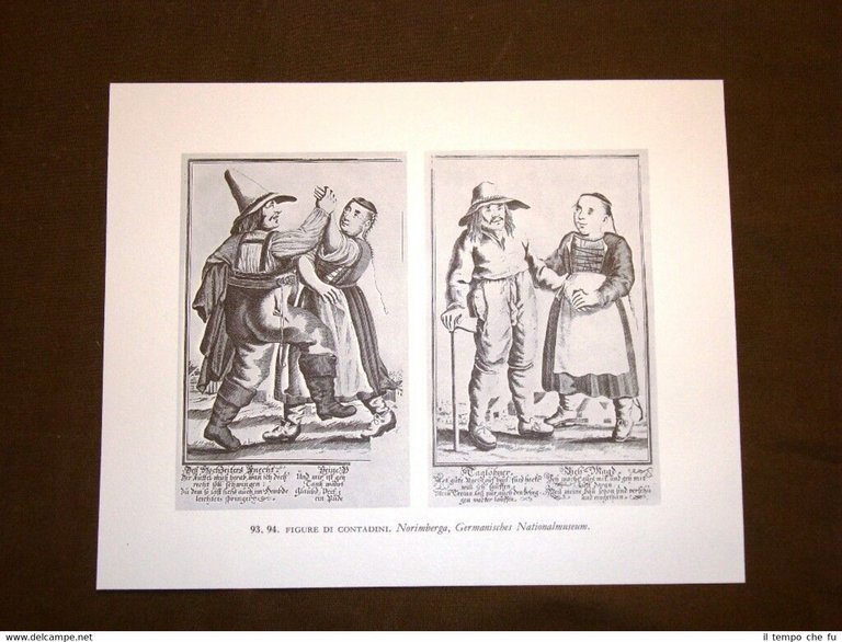 Stampa estratta da pubblicazione di metà '900 Figure di contadini Norimberga Arte popolare tedesca Germania STAPO-011 Dimensioni Cm 22,00 x 17,00 Qualora vogliate delle scansioni migliori contattateci, soddisferemo ogni vostra richiesta. Paypal Carta di credito Bonifico bancario Accuratamente adagiate su un cartoncino e protette da pellicola trasparente rigida, il tutto viene inserito dentro plico di adeguate dimensioni per proteggerne l'integrità.