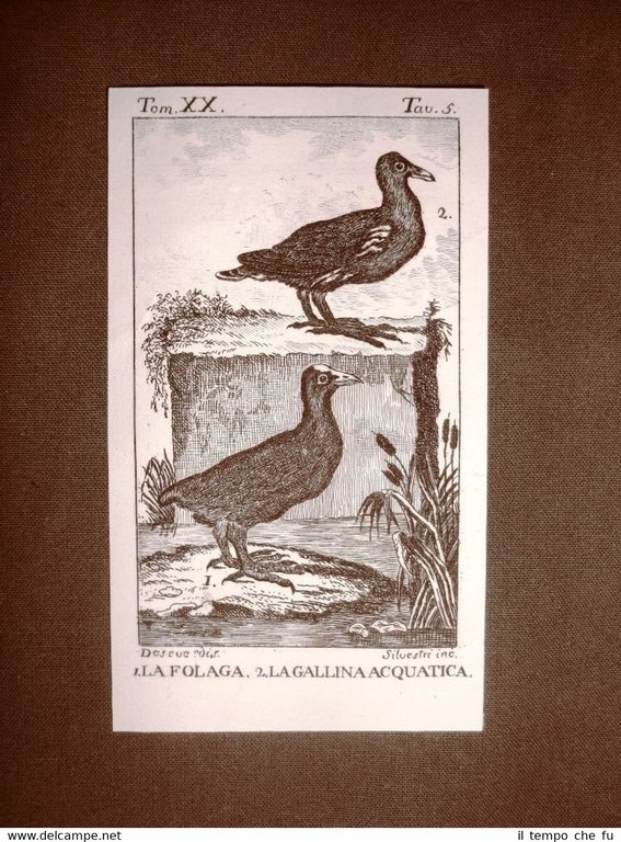 Incisione su rame stampata su carta pesante non retroscritta Estratta da pubblicazione del 1813. .incisione che ha quindi oltre 200 anni! Uccelli Folaga e Gallina acquatica Estratta dalla "Storia naturale di Buffon Classificata giusta il sistema di Linnèo da Renato Riccardo Castel Autore del Poema Le piante, proseguita da altri ch. scrittori e ridotta a completa storia di tutti e tre i regni della natura" Enorme opera del Conte di Buffon che tratta in modo completo gli Uccelli Autore Georges Louis Leclerc, Conte di Buffon (1707-1788) Pubblicato dai Torchj del Majno in Piacenzanel nel 1813 - 1815 Dimensioni: Cm 7,50 x 12,00 Buffon - 003 Qualora vogliate delle scansioni migliori contattateci, soddisferemo ogni vostra richiesta. Paypal Carta di credito Bonifico bancario Accuratamente adagiate su un cartoncino e protette da pellicola trasparente rigida,il tutto viene inserito dentro plico di adeguate dimensioni per proteggerne l'integrità
