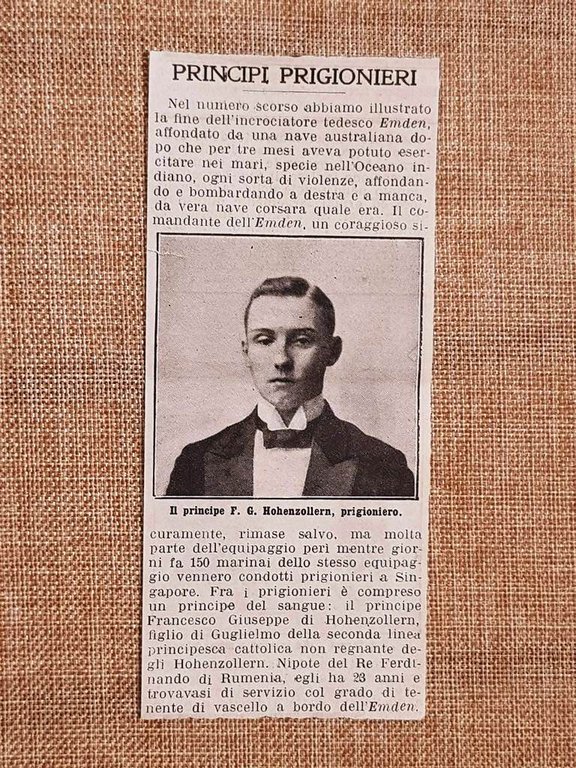 Francesco Giuseppe di Hohenzollern-Emden 1914 Prigioniero 1a Guerra mondiale WW1 Rara stampa estratta da pubblicazione del 1914 Il Principe Francesco Giuseppe di Hohenzollern-Emden nel 1914 Prigioniero Prima guerra mondiale WW1 Codice prodotto: VIP-173 Dimensioni Cm 14,00 x 6,00
