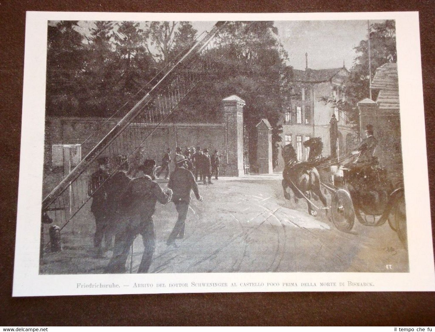 Rara Stampa Estratta da Rivista d'epoca del 1898 Friedrichsruhe nel 1898 Arrivo del Dott.Schweninger poco prima della morte di Bismarck Germania II1898-027T Cm 24,00 x 17,00 Qualora vogliate delle scansioni migliori contattateci, soddisferemo ogni vostra richiesta. Paypal Carta di credito Bonifico bancario Accuratamente adagiate su un cartoncino e protette da pellicola trasparente rigida il tutto viene inserito dentro plico di adeguate dimensioni per proteggerne l'integrità