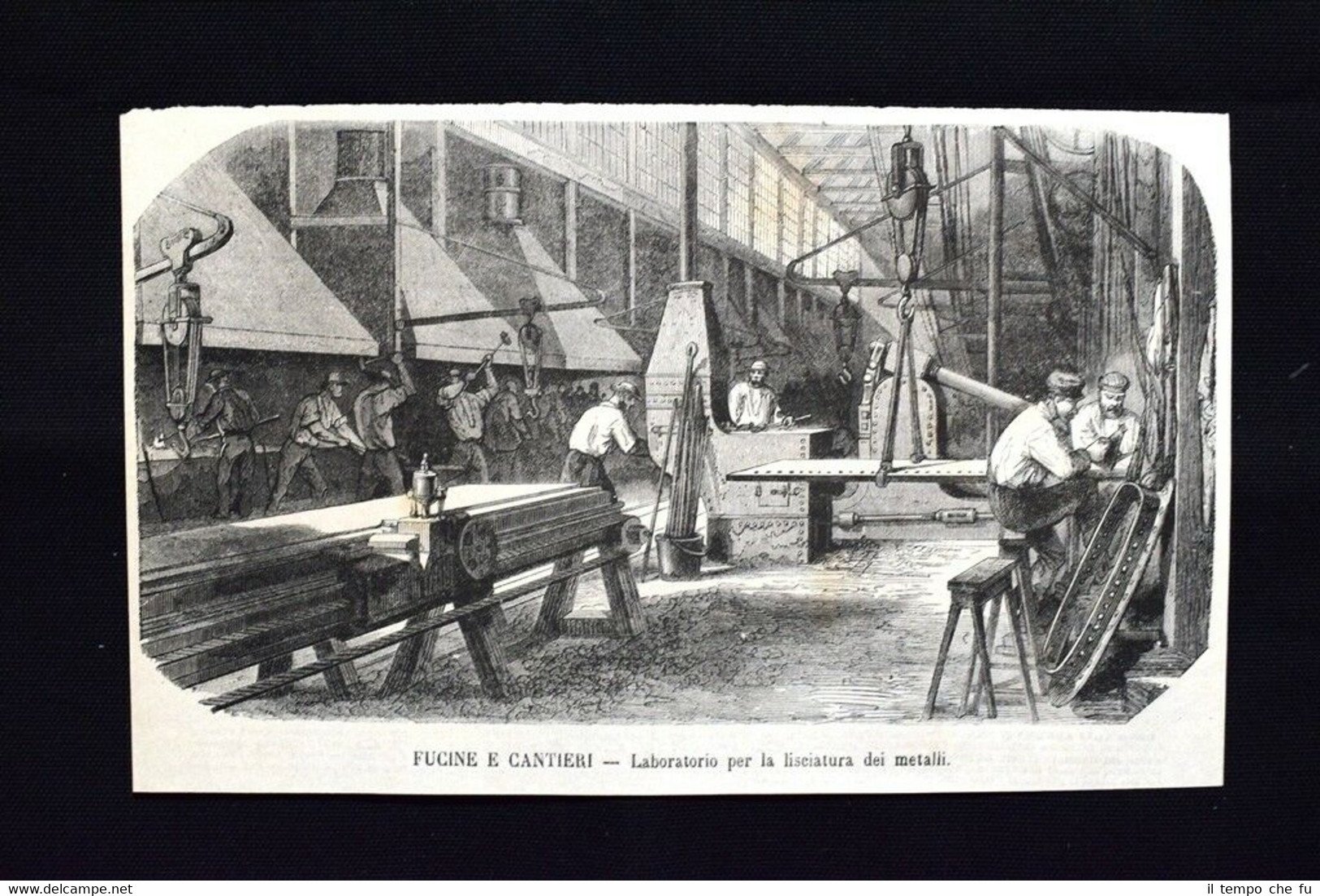 Fucine e cantieri - Laboratorio per la lisciatura dei metalli Incisione del 1870