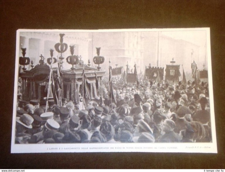 Rara Stampa Estratta da Rivista d'epoca del 1932 Funerale del Fratello del Duce Arnaldo Mussolini di Dovia Labari e Gagliardetti dei fasci II1932-001T Dimensioni Cm 26,00 x 16,50 Qualora vogliate delle scansioni migliori contattateci, soddisferemo ogni vostra richiesta. Paypal Carta di credito Bonifico bancario Accuratamente adagiate su un cartoncino e protette da pellicola trasparente rigida il tutto viene inserito dentro plico di adeguate dimensioni per proteggerne l'integrità