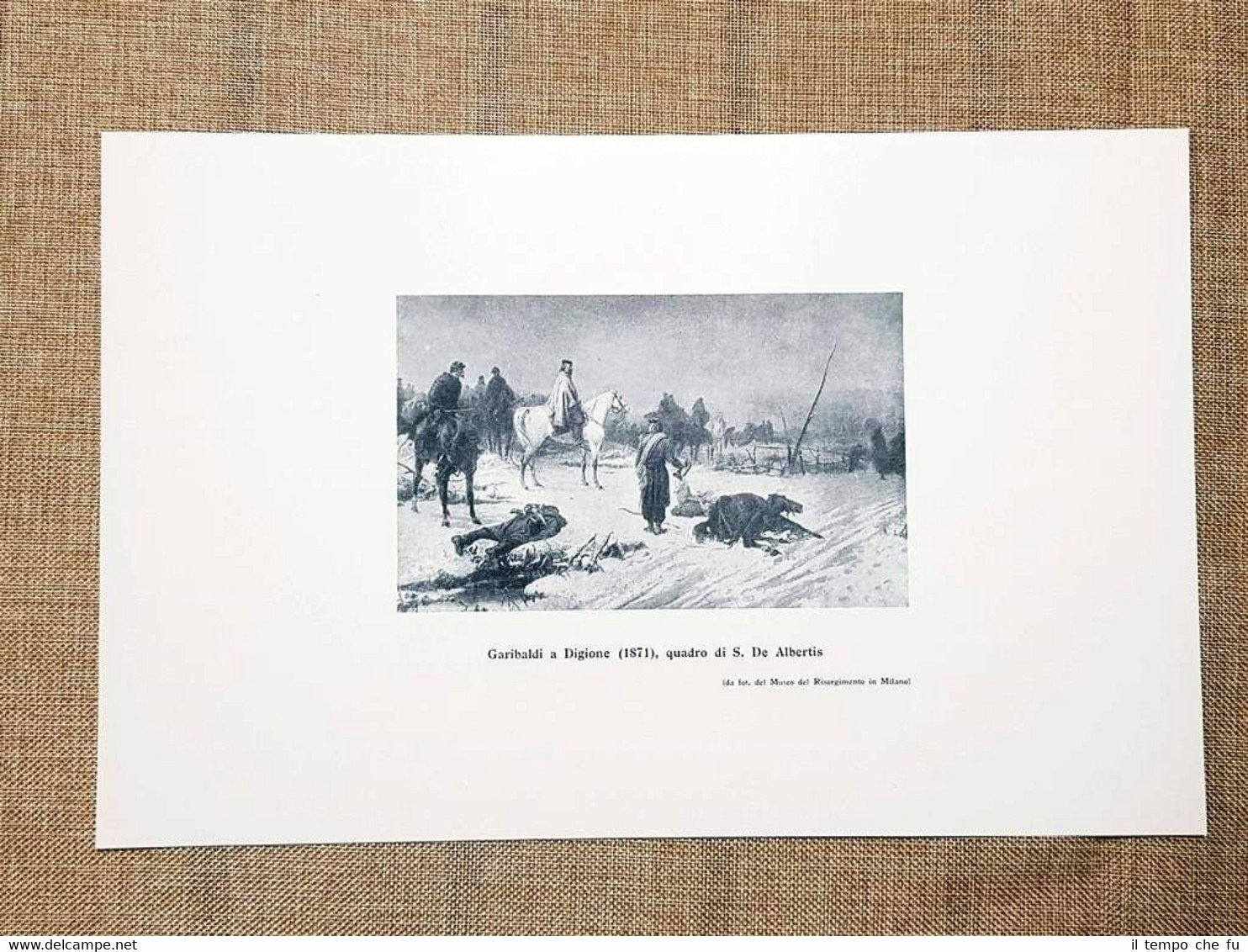 G.Garibaldi a Digione nel 1871 Quadro di S.De Albertis Museo Risorgimento Milano Rara stampa estratta da pubblicazione di fine '900 Stampata su carta non retroscritta Giuseppe Garibaldi a Digione nel 1871 Quadro di S. De Albertis Museo del Risorgimento di MilanoCodice articolo: VIP-163 Dimensioni: Cm 19,00 x 29,00