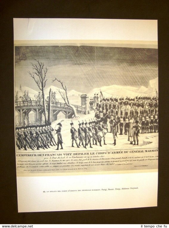 Stampa estratta da pubblicazione di metà '900 La sfilata del corpo d'armata del Generale Marmont Basset + Virginia Chesquière Croisey Biblioteca nazionale di Parigi Arte popolare francese STAPO-003 Dimensioni Fronte/retro Cm 25,00 x 34,00 + Cm 25,00 x 34,00 Qualora vogliate delle scansioni migliori contattateci, soddisferemo ogni vostra richiesta. Paypal Carta di credito Bonifico bancario Accuratamente adagiate su un cartoncino e protette da pellicola trasparente rigida, il tutto viene inserito dentro plico di adeguate dimensioni per proteggerne l'integrità.