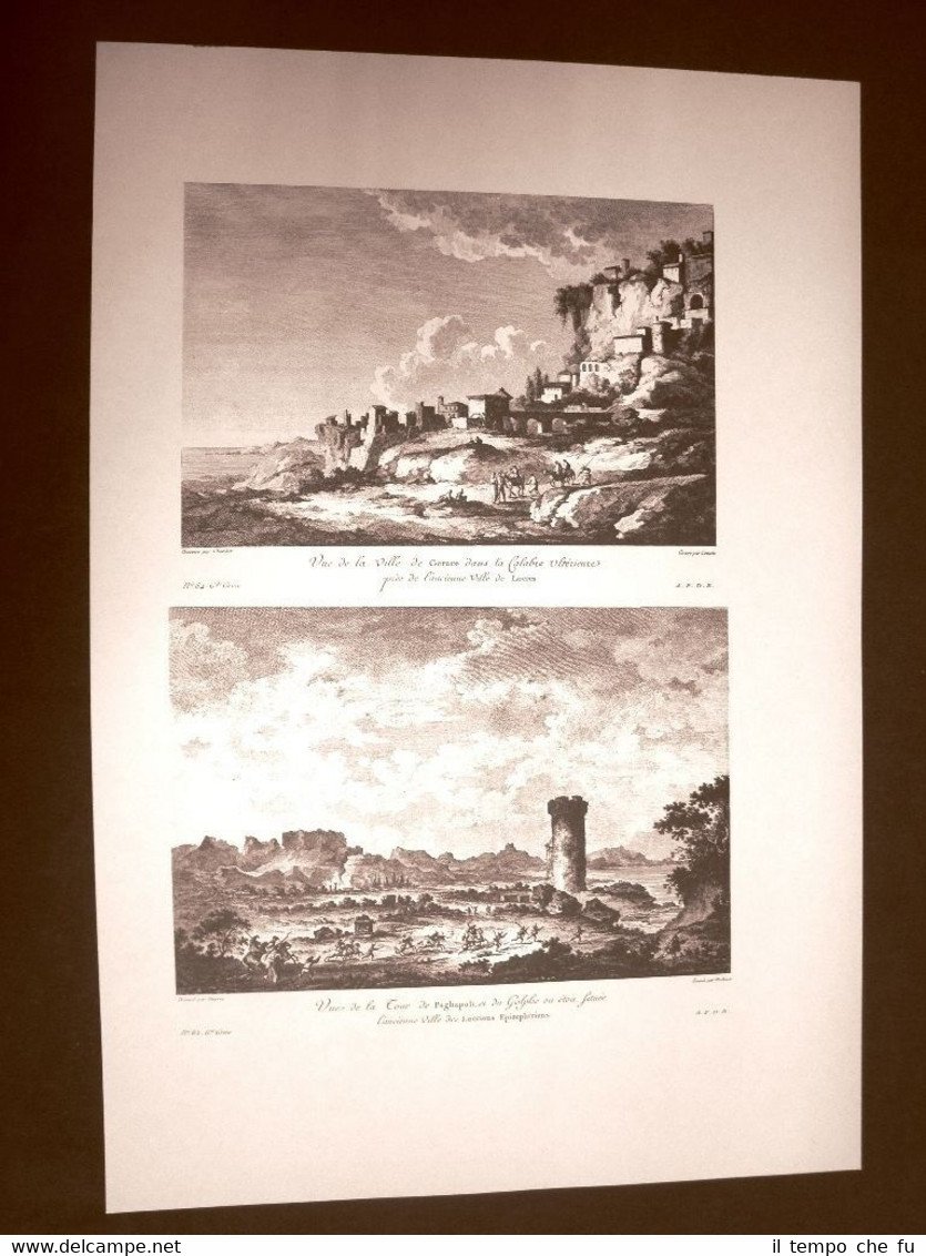 Grande litografia Stampata su carta speciale e non retroscritta Ristampa anni '50 di una celebre tavola facente parte della rara opera del 1785 "Voyage Pittoresque ou description des Royaumes de Naples et de Sicile" Scritta dall'Abate Jean Claude Richard de Saint - Non Veduta della città di Gerace e Torre di Pagliapoli e del Golfo ove era la città di Locriens Epizephiriens Calabria Ulteriore Litografie - 420 Dimensioni Cm 33,00 x 50,00 Jean-Claude Richard de Saint-Non, meglio noto come Abate di Saint-Non, o Abbé de Saint-Non (Parigi, 1727 - 25 novembre 1791), è stato un incisore, disegnatore, umanista, nonché archeologo, mecenate e viaggiatore francese. Egli fu destinato dalla famiglia alla vita religiosa e per questa ragione nel 1749 poté anche entrare nel parlamento di Parigi. Per la sua opposizione alla bolla Unigenitus fu esiliato a Poitiers. Tra il 1759 ed il 1761 visitò l'Inghilterra e successivamente l'Italia, rimanendo particolarmente impressionato dal Sud Italia, soprattutto dalla Calabria e dalla Sicilia. Scrisse un'opera enciclopedica illustrata da lui stesso intitolata Voyage pittoresque ou Description des Royaumes de Naples et de Sicile, dove riporta resoconti ed impressioni da lui raccolte tra il 1781 ed il 1786. Questa sua opera è stata illustrata con disegni dei migliori artisti, in parte riprodotti proprio dallo stesso Saint-Non. Qualora vogliate delle scansioni migliori contattateci, soddisferemo ogni vostra richiesta. PaypalCarta di creditoBonifico bancario La litografia verrà arrotolata e spedita con tubo postale o plico di adeguate dimensioni per proteggerne l'integrità.