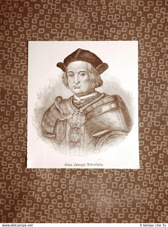 Rara stampa estratta da pubblicazione del 1894. .stampa che ha quindi oltre 125 anni! Gian Giacomo Trivulzio Militare Milano, 1440 – Arpajon, 5 dicembre 1518 NEDA-015 Dimensioni Cm 8,00 x 9,00 Qualora vogliate delle scansioni migliori contattateci, soddisferemo ogni vostra richiesta. Paypal Carta di credito Bonifico bancario Accuratamente adagiate su un cartoncino e protette da pellicola trasparente rigida, il tutto viene inserito dentro plico di adeguate dimensioni per proteggerne l'integrità.
