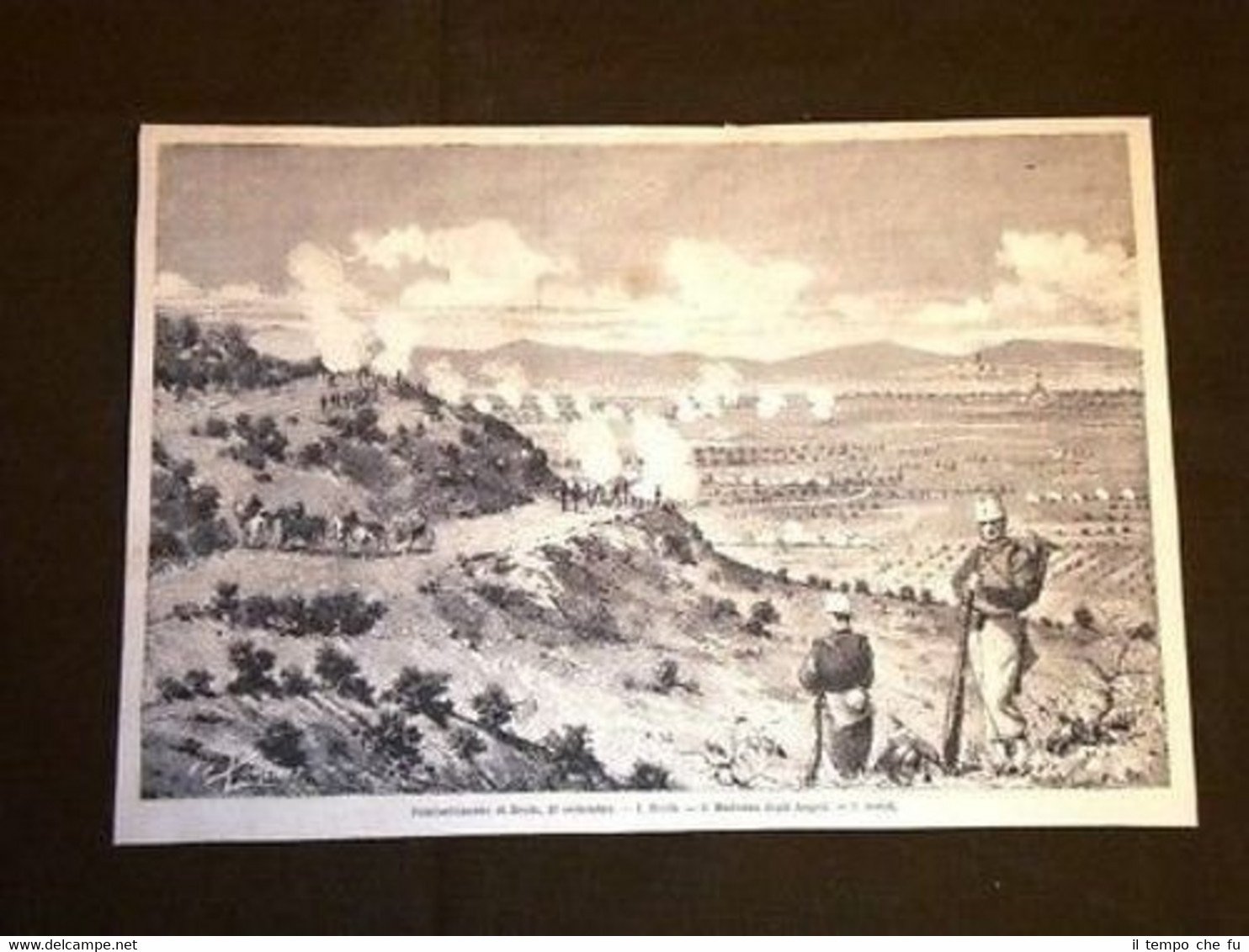 RARA INCISIONE OTTOCENTESCA ESTRATTA DA RIVISTA D'EPOCA Le Grandi Manovre in Umbria Combattimento di Brufa Brufa Madonna degli Angeli Assisi II1882-039T Dimensioni Cm 23,50 x 16,50 Qualora vogliate delle scansioni migliori contattateci, soddisferemo ogni vostra richiesta. Paypal Carta di credito Bonifico bancario Accuratamente adagiate su un cartoncino e protette da pellicola trasparente rigida il tutto viene inserito dentro plico di adeguate dimensioni per proteggerne l'integrità