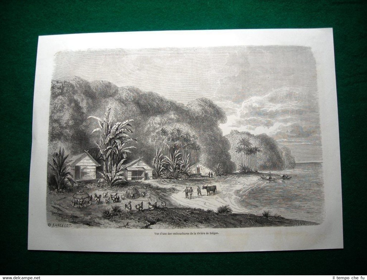 Gravure année 1860 vue d'une des embouchures de la rivière de Saigon
