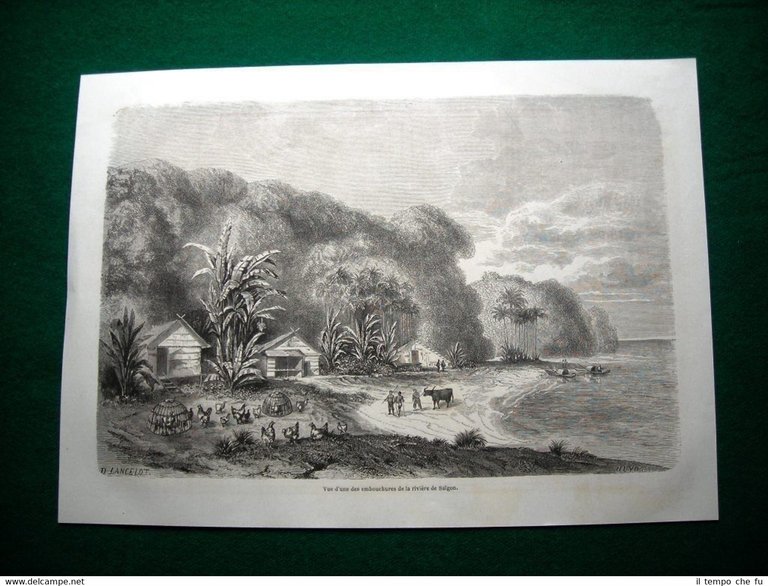 Rara Incisione Estratta da Rivista d'epoca del 1860 Gravure année 1860 vue d'une des embouchures de la rivière de Saigon TDM1860-02 Dimensioni Cm 27,00 x 19,00 Qualora vogliate delle scansioni migliori contattateci, soddisferemo ogni vostra richiesta. Paypal Carta di credito Bonifico bancario Accuratamente adagiate su un cartoncino e protette da pellicola trasparente rigida, il tutto viene inserito dentro plico di adeguate dimensioni per proteggerne l'integrità.