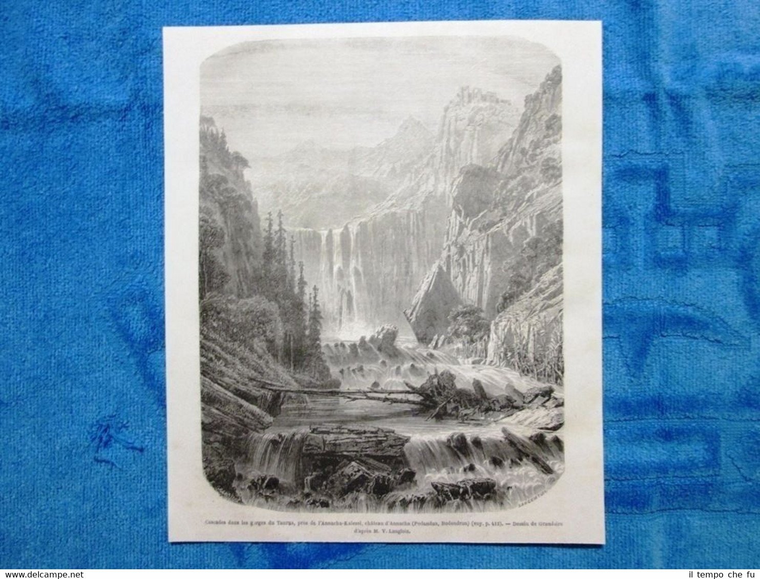 Gravure Année 1861 - Cascades dans les gorges du Taurus(Turquie) - Gole del Toro
