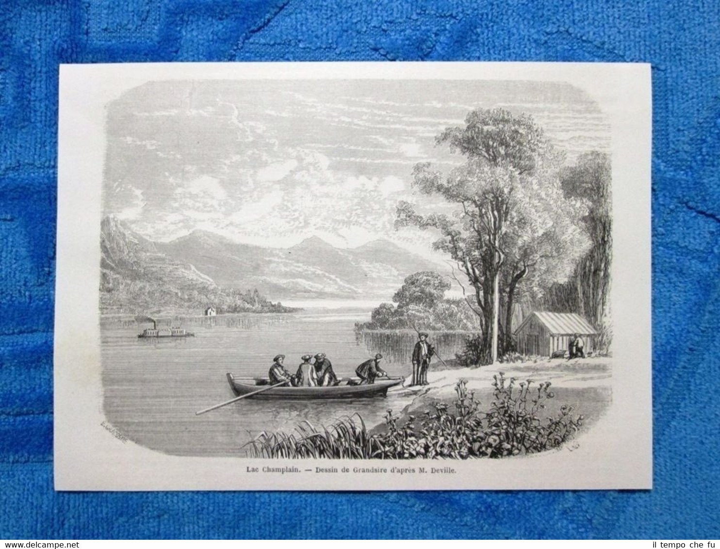 Gravure Année 1861 - Lac Champlain (Etats-Unis) - Lago Champlain (Stati Uniti)
