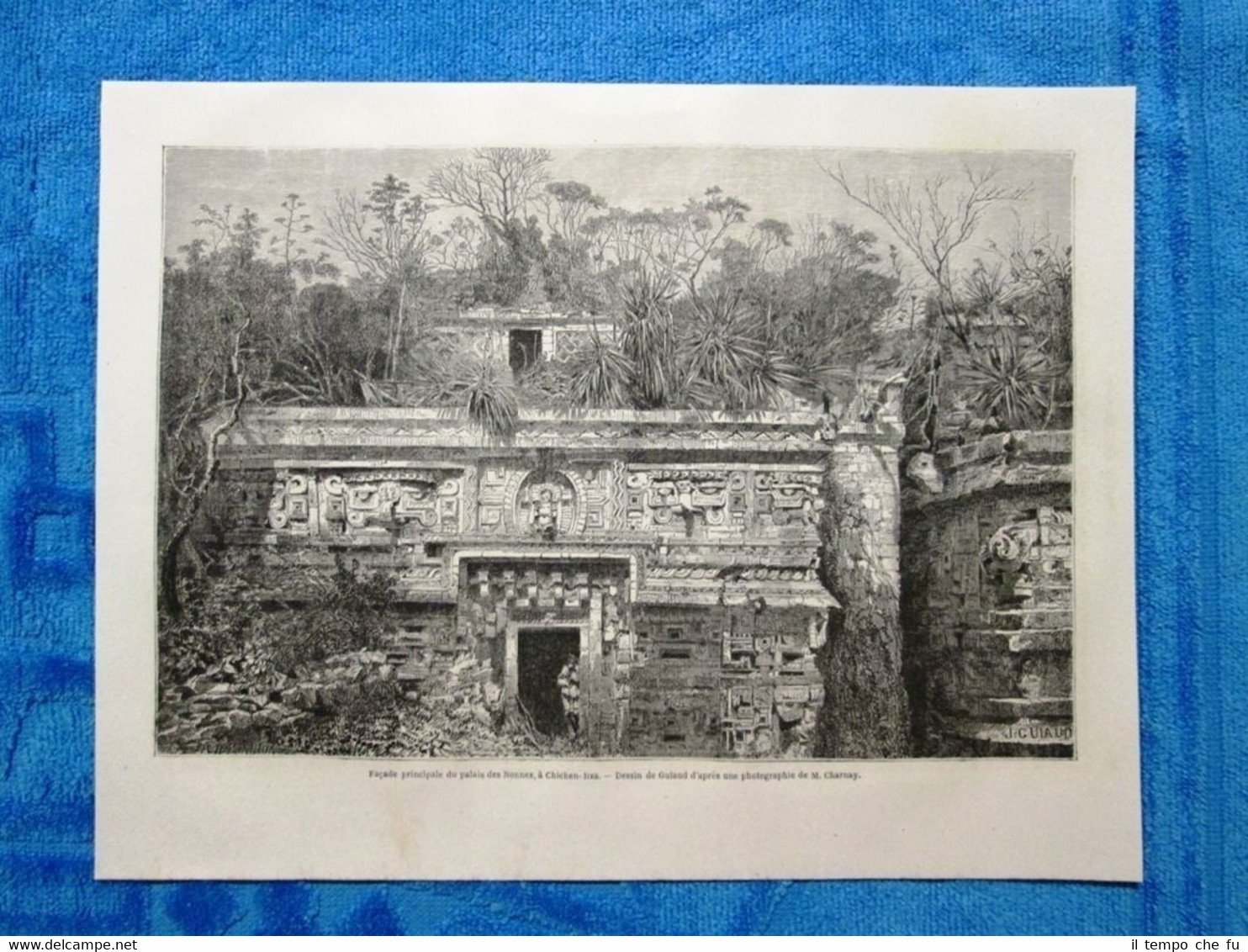 Rara Incisione Estratta da Rivista d'epoca del 1862 Gravure Année 1862 Facade principale du palais des Nonnes, à Chichen-Itza (Mexique) Facciata principale del palazzo delle Suore, a Chichen-Itza (Messico) TDM1862-020 Dimensioni Cm 27,00 x 20,00 Qualora vogliate delle scansioni migliori contattateci, soddisferemo ogni vostra richiesta. PaypalCarta di creditoBonifico bancario Accuratamente adagiate su un cartoncino e protette da pellicola trasparente rigida,il tutto viene inserito dentro plico di adeguate dimensioni per proteggerne l'integrità.