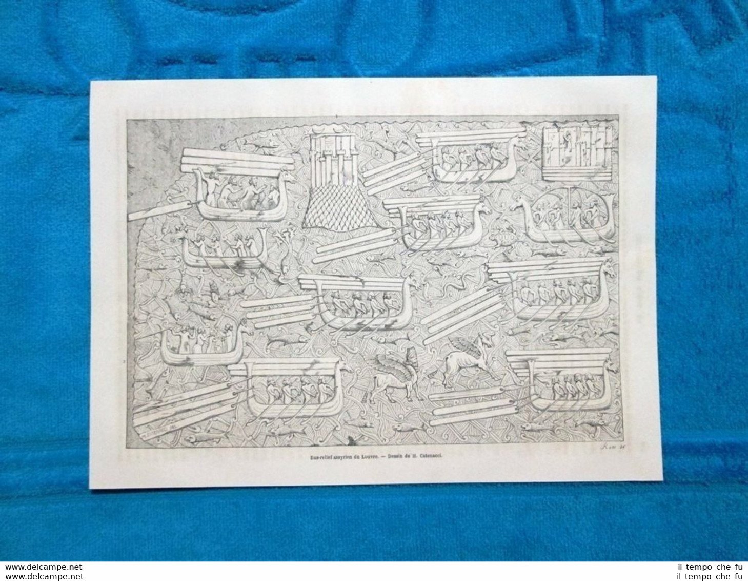 Gravure Année 1863 - Bas-relief assyrien du Louvre - Bassorilievo assiro