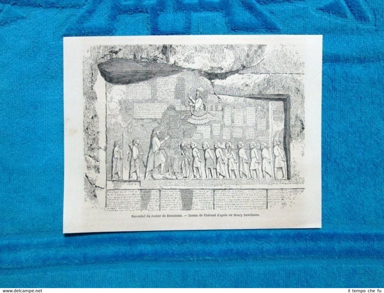 Rara Incisione Estratta da Rivista d'epoca del 1863 Gravure Année 1863 Bas-relief du rocher de Bisouton (Iran) Bassorilievo di Bisotun (Iran) TDM1863-008 Dimensioni Cm 18,00 x 14,00 Qualora vogliate delle scansioni migliori contattateci, soddisferemo ogni vostra richiesta. PaypalCarta di creditoBonifico bancario Accuratamente adagiate su un cartoncino e protette da pellicola trasparente rigida,il tutto viene inserito dentro plico di adeguate dimensioni per proteggerne l'integrità.