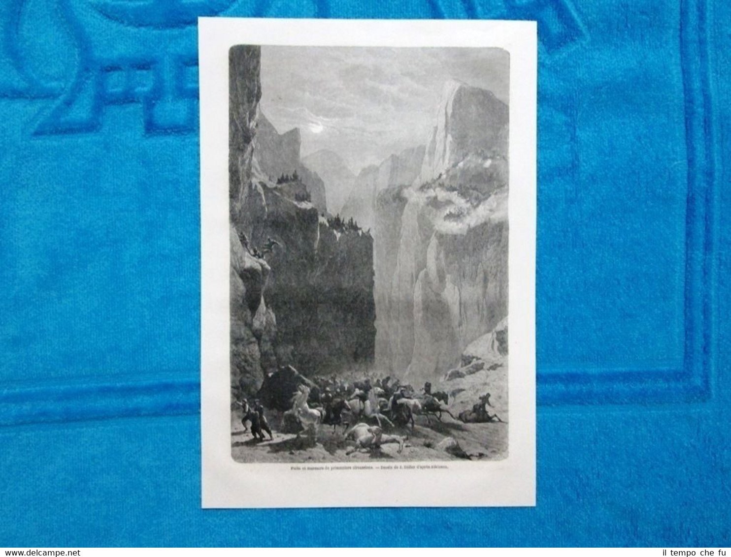 Gravure Année 1863 - Fuite e massacre de prisonniers circassiens-Fuga e massacro