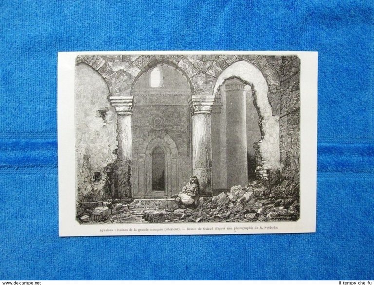 Gravure Année 1864 - Ayaslouk,ruines de la grande mosquée - Rovine della moschea