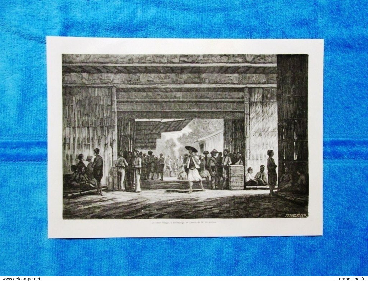 Rara Incisione Estratta da Rivista d'epoca del 1864 Gravure Année 1864 Le bazar Glapp à Soerabaija (Indonesie) Il mercato Glapp a Soerabaija (Indonesia) TDM1864-018 Dimensioni Cm 27,00 x 20,00 Qualora vogliate delle scansioni migliori contattateci, soddisferemo ogni vostra richiesta. PaypalCarta di creditoBonifico bancario Accuratamente adagiate su un cartoncino e protette da pellicola trasparente rigida,il tutto viene inserito dentro plico di adeguate dimensioni per proteggerne l'integrità.