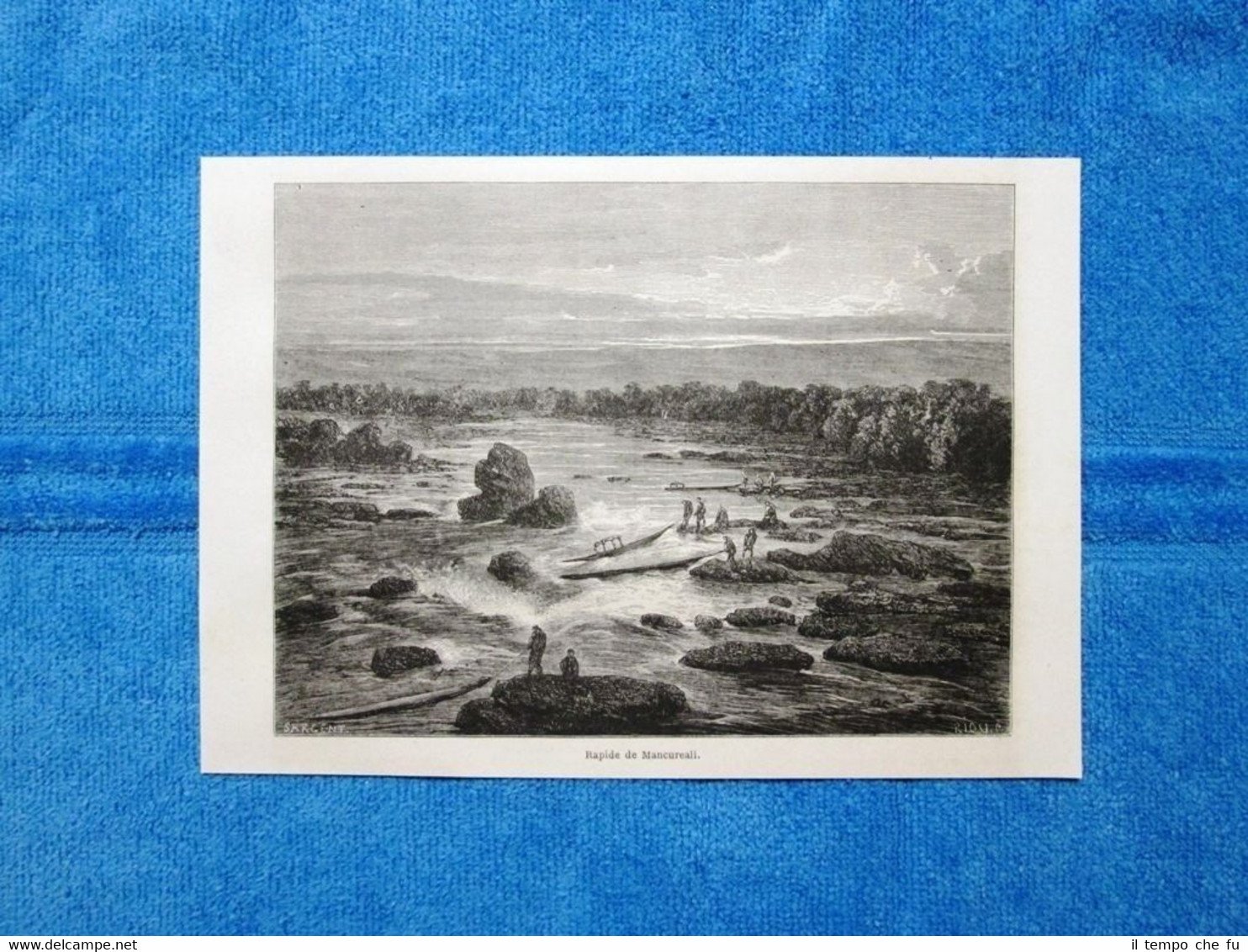 Gravure Année 1864 - Rapide de Mancureali + Jonction des rivieres (Perou)