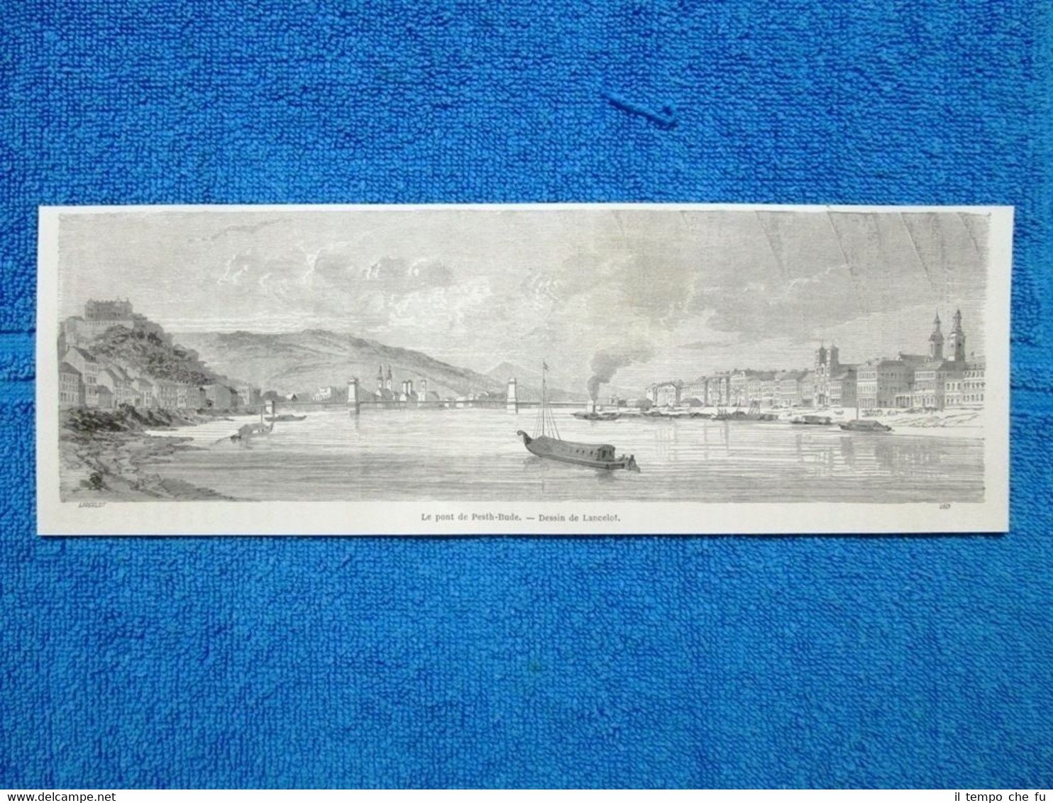 Gravure Année 1865 - Le pont de Pesth-Bude (Hongrie) - Il ponte (Ungheria)