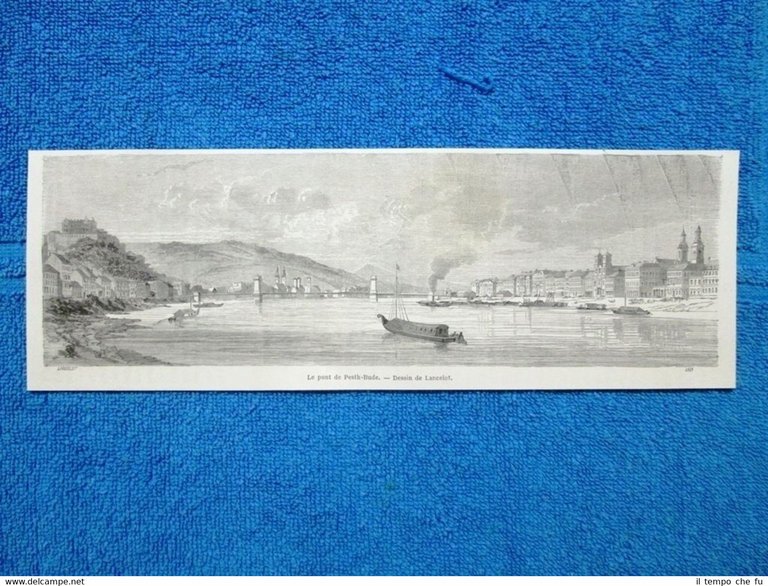 Rara Incisione Estratta da Rivista d'epoca del 1865 Gravure Année 1865 Le pont de Pesth-Bude (Hongrie) Il ponte di Pesth-Buda (Ungheria) TDM1865-001 Dimensioni Cm 25,00 x 9,00 Qualora vogliate delle scansioni migliori contattateci, soddisferemo ogni vostra richiesta. PaypalCarta di creditoBonifico bancario Accuratamente adagiate su un cartoncino e protette da pellicola trasparente rigida,il tutto viene inserito dentro plico di adeguate dimensioni per proteggerne l'integrità.