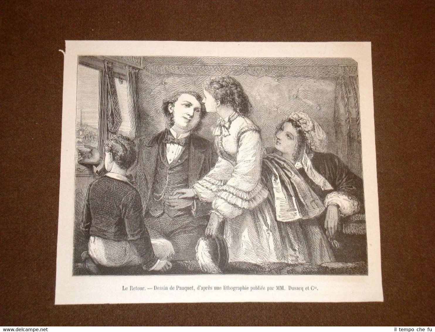 Gravure année 1873 Emigrants, Le retour - Dessin de Pauquet