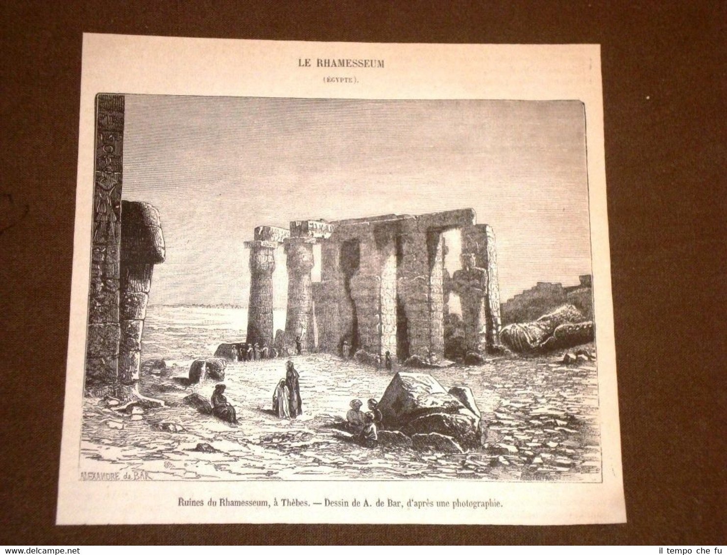 Gravure année 1873 Ruines du Rhamesseum à Thèbes - Egypte o Egitto